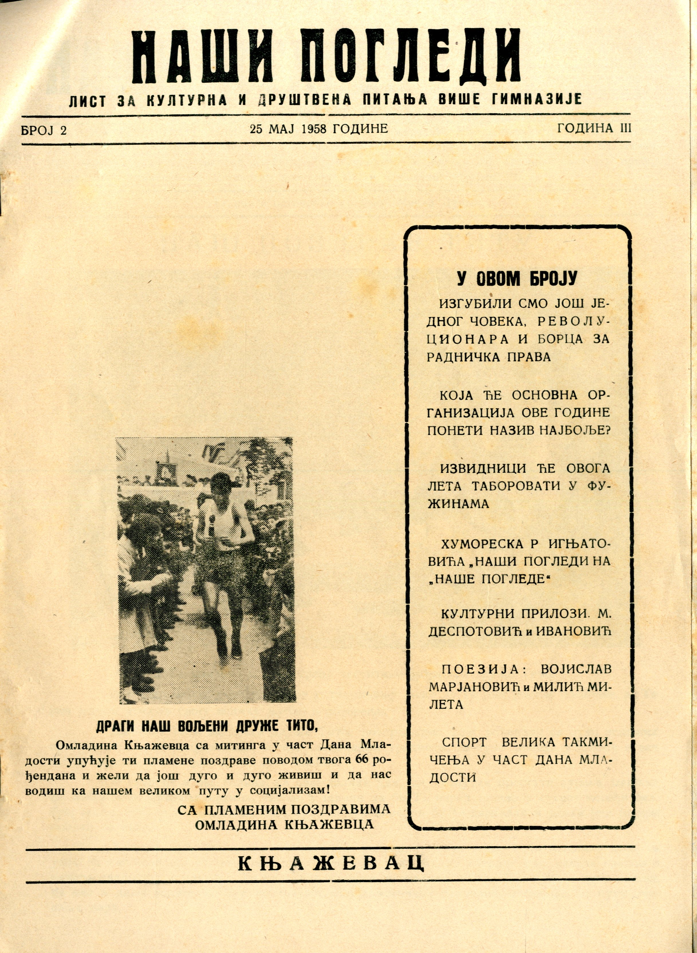 Наши погледи : лист за културна и друштвена питања Гимназије "Иво Лола Рибар"